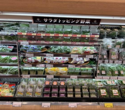 沙拉是日本人日常生活中必不可缺少的內(nèi)容,也是超市蔬菜部門極其重視的品群,越是靠近城市,對(duì)沙拉的需求越是呈現(xiàn)出剛需與高頻特點(diǎn)。BLANDE用了七個(gè)風(fēng)幕柜展示沙拉關(guān)聯(lián)賣場,圖4是“沙拉用Topping配料用蔬菜”賣場,將沙拉中的Topping配料做深做透,推出沙拉品群備齊上的差別性。如此不僅滿足對(duì)沙拉講究的客群的需求,同時(shí),在沙拉的“配料”上做文章,將日常性演繹出“非日常性”,可謂一箭多雕。
