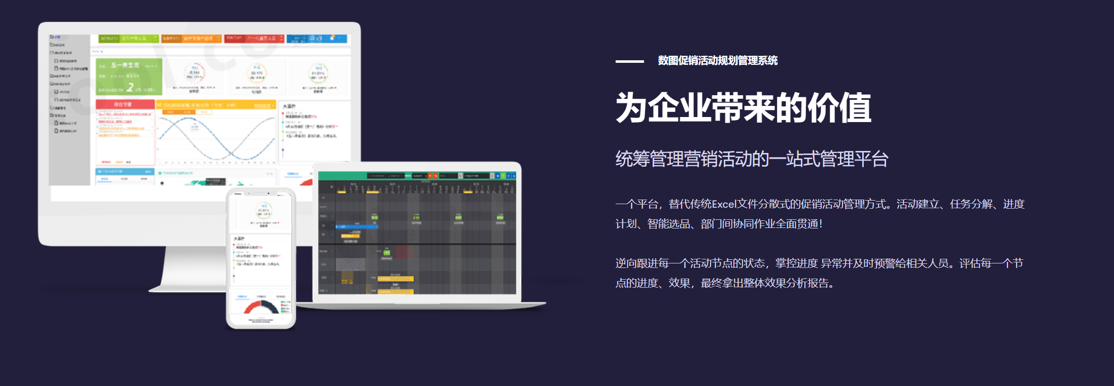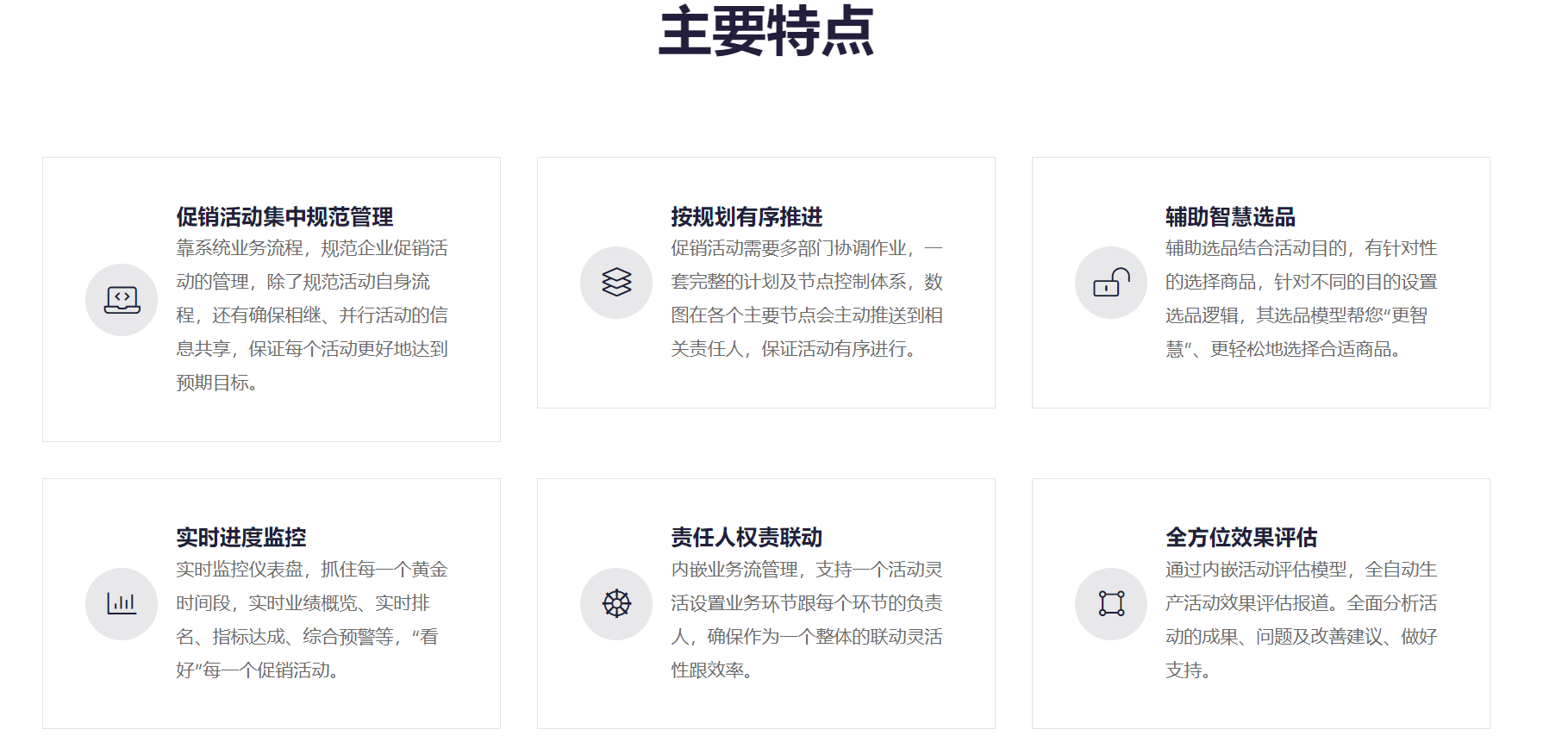 數(shù)圖認(rèn)為還是要回歸零售企業(yè)的服務(wù)本質(zhì)!52周MD是零售企業(yè) “銷售規(guī)劃管理” 精細(xì)化管理的進(jìn)階!所以我們?yōu)檫B鎖零售企業(yè)打造了一套52周促銷活動創(chuàng)建、活動進(jìn)度監(jiān)控、輔助智能選品、活動效果評估、進(jìn)行中風(fēng)險監(jiān)控、實(shí)時業(yè)績儀表盤等功能。幫助企業(yè)通過系統(tǒng)規(guī)范促銷活動規(guī)劃管理工作。將大賣場打造成“生活提案者”以合適的時間、合適的地點(diǎn)、合適的數(shù)量、合適的價格,為消費(fèi)者提供想要的產(chǎn)品及服務(wù)!