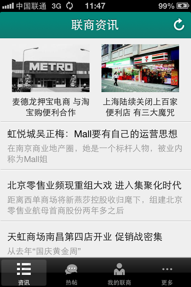 我一般上來,看完首頁資訊,就會直奔論壇;但在手機客戶端里,4個板塊,資訊、熱帖、我的聯(lián)商、更多,沒找到論壇啊?