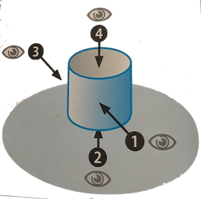 ①從正面 ② 從斜下方 ③ 從斜上方 ④從上方