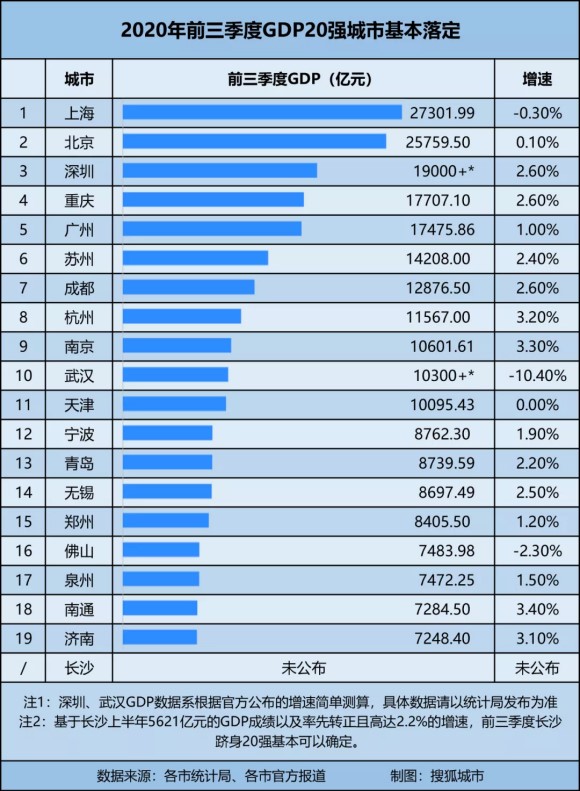 2010年--2019年59個城市常住人口增長數(shù)量排名:人口增長數(shù)量排名前20的城市中,有14個城市2019年GDP總量排名全國前20。