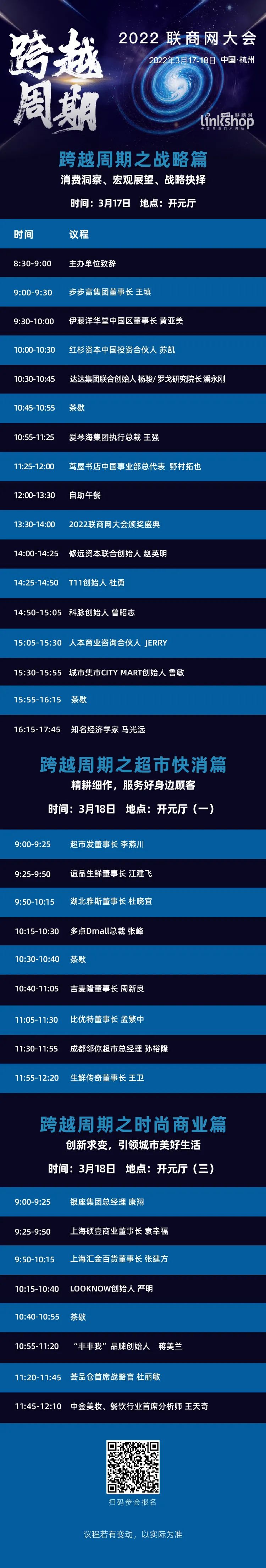 沒(méi)有一個(gè)冬天不可逾越,沒(méi)有一個(gè)春天不會(huì)來(lái)臨。2022年3月17-18日,由聯(lián)商網(wǎng)、搜鋪網(wǎng)、知了殼主辦的2022聯(lián)商網(wǎng)大會(huì)將在杭州召開(kāi),我們一起探討跨越周期,一起探究前行和揚(yáng)升的未來(lái)道路,期待你的到來(lái)!