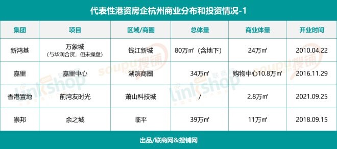有一種被普遍認可的觀點是,杭州商業(yè)能級的提升是外來開發(fā)商集體做出的貢獻。從華潤到龍湖、大悅城、寶龍、印力等等,每一家都視杭州為戰(zhàn)略重地并加以深耕,打造了一座座區(qū)域地標商業(yè)體。這其中,不乏日漸活躍的港資發(fā)展商身影,新鴻基、嘉里、恒隆、新世界、崇邦......近年來密集落子杭州,給杭州商業(yè)帶來了新鮮的血液和活力,成為杭州商業(yè)勢力的重要一極。