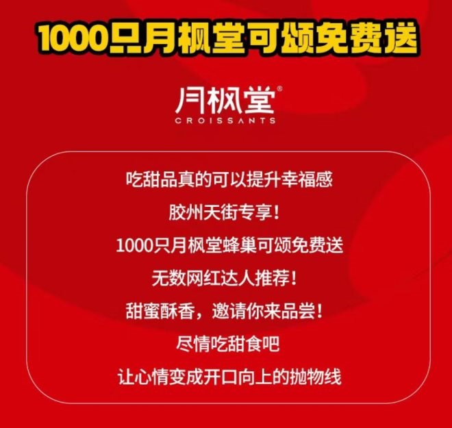 4.前期蓄水不可少。像該項(xiàng)目的“1000個可頌免費(fèi)送”之類活動還是很有效的,但核心在于—切忌選擇太小眾的禮品,以免曲高和寡(最好的其實(shí)是超市現(xiàn)金券,全客群、有吸引力、還拉銷售)。