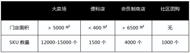 主流零售業(yè)態(tài)面積&SKU數(shù)量