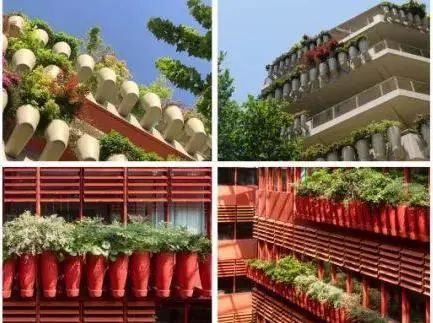 這些掛在立面上的花盆,需要保持封閉才能避免灌溉時(shí)候的漏水。但完全封閉之后,又會(huì)導(dǎo)致空氣無(wú)法滲透循環(huán)、影響植物生長(zhǎng),同時(shí)后期難以更換等問(wèn)題。