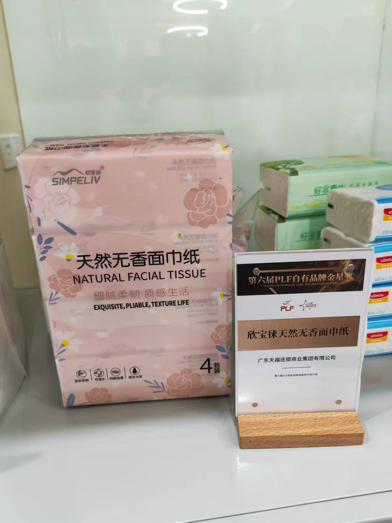 我本來以為,自有品牌做餐巾紙沒啥特別的,但體驗以后覺得,有幾款餐巾紙也很有特點。如廣東天福出品的天然無香面巾紙,有兩個特點:一是有韌性,二是在太陽底下撕開,未見漂浮的細小顆粒。