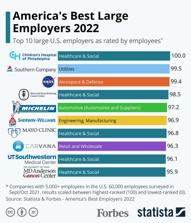 Source: Statista &Forbes-America's Best Employers 2022