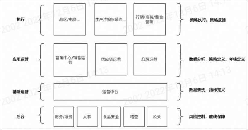 同時(shí)元?dú)馔瓿闪艘惠喰碌慕M織架構(gòu)調(diào)整,新增“基礎(chǔ)運(yùn)營(yíng)”,也就是運(yùn)營(yíng)中臺(tái)。運(yùn)營(yíng)中臺(tái)的作用是清洗數(shù)據(jù)和定義指標(biāo),相當(dāng)于服務(wù)運(yùn)營(yíng)的“大腦”,此舉是為了進(jìn)一步提升中后臺(tái)的組織協(xié)調(diào)能力。