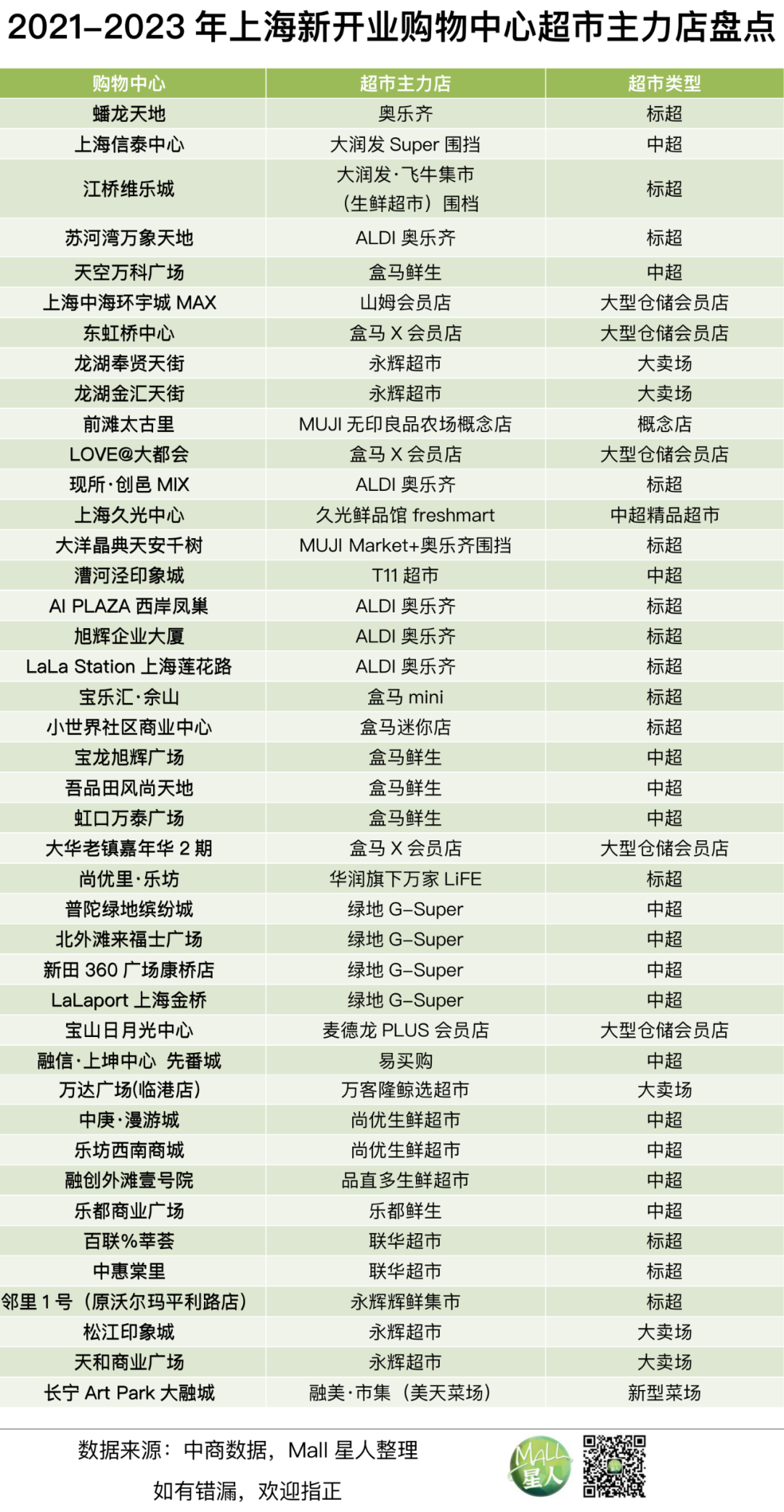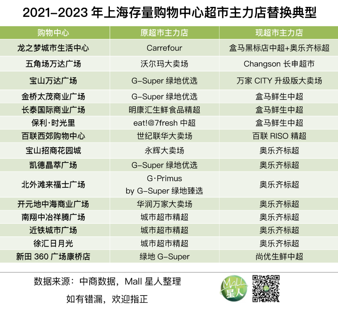 △注:2017-2021年盒馬鮮生替代了大量大賣場(chǎng),2022年起奧樂齊異軍突起替代了諸多超市主力店,2023年更多超市主力店正洗牌中。