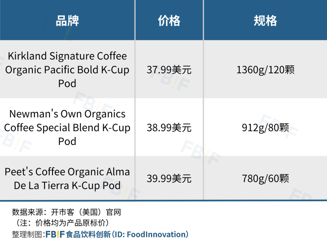 在開市客(美國)官網(wǎng)上,同樣是有機膠囊咖啡,科蘭克的價格低于另外兩個品牌Newman's Own和Peet's。