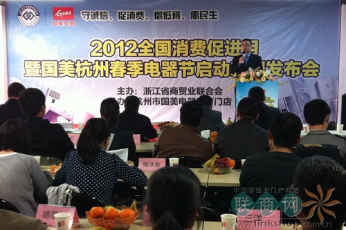 2012年1月30日商務(wù)部發(fā)布為貫徹落實(shí)《商務(wù)部、財(cái)政部、中國(guó)人民銀行關(guān)于“十二五”時(shí)期做好擴(kuò)大消費(fèi)工作的意見(jiàn)》,商務(wù)部擬于2012年4-5月舉行“2012年全國(guó)消費(fèi)促進(jìn)月”活動(dòng)。國(guó)美電器積極響應(yīng)政府倡導(dǎo),在浙江省商貿(mào)業(yè)聯(lián)合會(huì)、杭州市貿(mào)易局的指導(dǎo)下推出全國(guó)消費(fèi)促進(jìn)月“杭州春季電器節(jié)”活動(dòng)。
