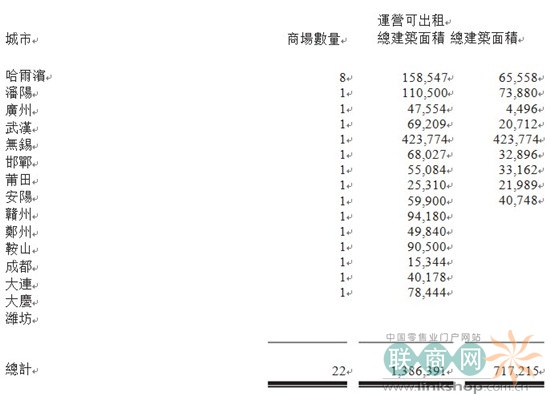 人和商業(yè)表示,集團目前在運營的22個商場遍布全國15個城市(運營總建筑面積相當(dāng)于139萬平方米)。至于未來擴展方面,人和商業(yè)在13個城市已有15個在建商場,施工總建筑面積相當(dāng)于156萬平方米,另有總建筑面積352萬平方米的項目已獲批準(zhǔn)并在籌劃中。