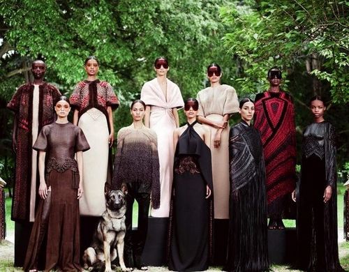 紀(jì)梵希2012年秋冬高級(jí)定制,透過(guò)強(qiáng)烈的對(duì)比設(shè)計(jì),本季高級(jí)定制系列盡顯高超的手工工藝。Riccardo Tisci巧妙地利用對(duì)比效果,彰顯出女性的力量與魅力。濃郁的吉普賽風(fēng)情與60年代的簡(jiǎn)約線條交融互匯,豐富精致的材質(zhì)、工藝與極簡(jiǎn)的構(gòu)圖相映生輝。繭狀披肩上,飾有金屬環(huán)的編織皮革和精細(xì)的紅色珠繡圖案,格外醒目。此圖案更延伸至黑紅串珠流蘇的末端。