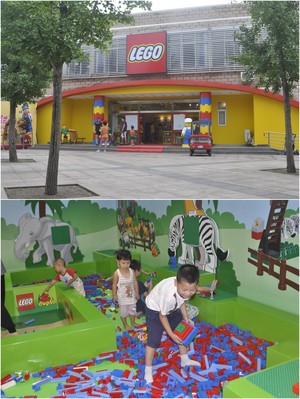 上圖為位于北京朝陽(yáng)公園內(nèi)的樂高體驗(yàn)式專賣店,下圖為專賣店內(nèi)的創(chuàng)意體驗(yàn)空間