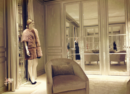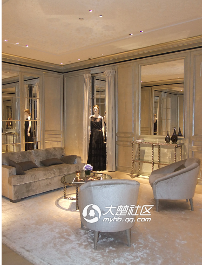 女裝成衣區(qū)內(nèi),意在烘托出如同置身于私人公寓般舒適摩登的空間氛圍:古典風(fēng)格的大理石壁爐,置于壁爐前設(shè)計精巧獨到的咖啡桌,讓人仿佛置身于迪奧先生的私人公寓內(nèi)。藝術(shù)家約蘭姆(Yorame)更以Dior先生故鄉(xiāng)格蘭維爾(Granville)的花園為創(chuàng)作靈感,創(chuàng)作了花園圖案的裝飾畫,你會在這里感受到時尚與藝術(shù)的完美融合。迪奧女裝精品店櫥窗以“凡爾賽秘密花園”為主題,展示二零一二年秋冬新裝。