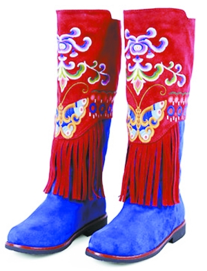 這款高筒靴紅藍相間的視覺強烈對比以及精致的蝴蝶爭艷繡花,更是將這幾個本不同源的時尚元素完美結(jié)合在一起。