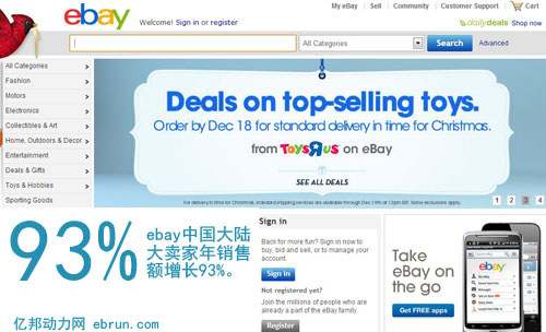 11月,eBay終于高調的發(fā)出聲音,大中華區(qū)年銷售額超過10萬美元的eBay賣家增長勢頭強勁,在過去一年中銷售額增長了68%。其中,中國大陸的eBay大賣家年銷售額增長了93%。