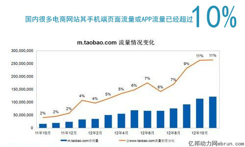 2012年果真變成了“移動電商的元年”。從多家機構披露的數據已經發(fā)現(xiàn),今年有太多的電商出現(xiàn)了移動流量大爆炸,移動APP導入的流量和手機網頁的流量大大超出10%,甚至已經出現(xiàn)了移動端產生交易占比達到18%的網站。
