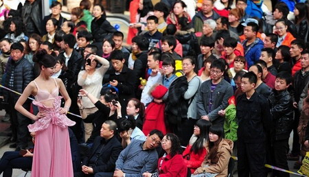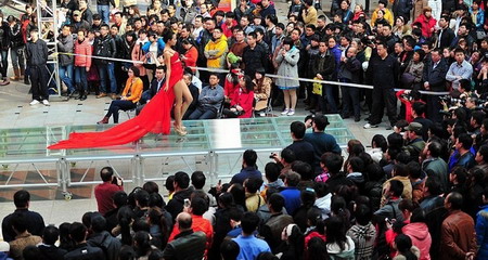 3月8日,婦女節(jié),沈陽市一商場內(nèi)舉辦一場內(nèi)衣秀,數(shù)千名市民前來觀看。