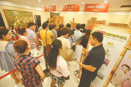 來自武昌的劉小姐告訴記者,她今天早上就到國廣了,等活動(dòng)一開始就馬上繳款,搶兌禮品,她笑嘻嘻的說,“我就是沖著39寸的液晶電視機(jī)來的”。