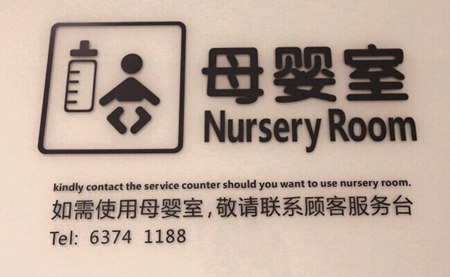 育嬰室位于6層,門上貼有指示標(biāo)志:敬請聯(lián)系顧客服務(wù)臺。