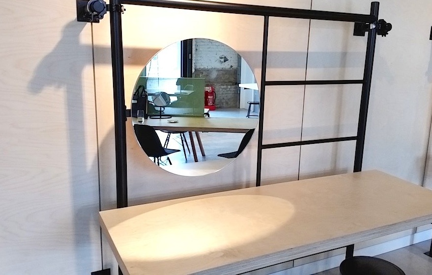 這里有個小鏡子,你可以利用它試戴不同的谷歌眼睛,就像在普通眼鏡店一樣。