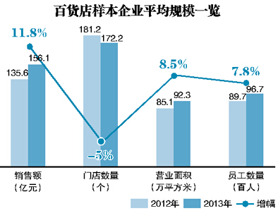 去年,中國連鎖經(jīng)營協(xié)會百強企業(yè)中,50家以百貨業(yè)務(wù)為主的企業(yè)銷售額增長為9.6%,與2006-2011年25%的復(fù)合增長率相去甚遠(yuǎn)。同時,門店增幅僅為0.4%,比去年下降8個百分點,并低于百強整體水平,反映百貨增長乏力。