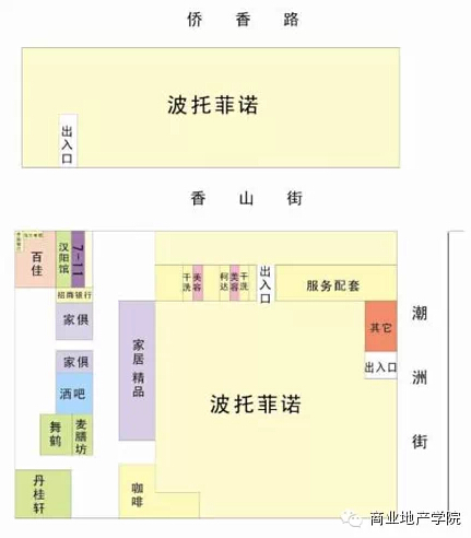 波托菲諾是深圳華僑城片區(qū)的高尚住宅社區(qū)。與東海坊相似,餐飲也是其經(jīng)營的一大特色。主力店百佳超市臨展示效果較好的香山街,7-11便利店位置與其隔漢陽館相鄰,但較靠近出入口。