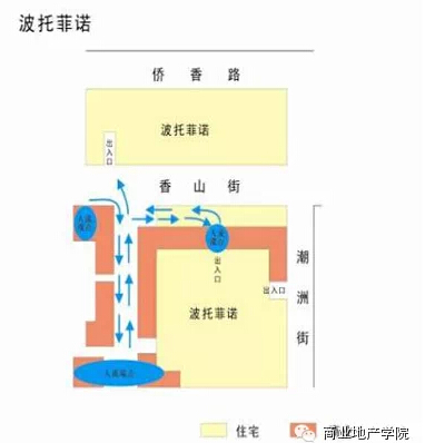 綜合兩種類型人流動線分析,社區(qū)商業(yè)人流動線規(guī)劃應(yīng)主要注意以下幾點(diǎn):