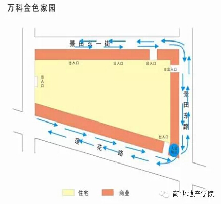 2、人流焦點(diǎn)或人流端點(diǎn)盡量臨主要道路設(shè)置,對外展示面良好,利于導(dǎo)入外部人流;