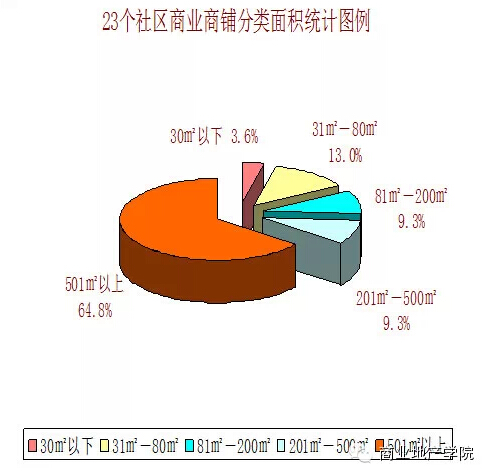 每種業(yè)態(tài)對于硬件技術(shù)指標(biāo)的要求都不一致,對于鋪位面積的需求也各不相同,結(jié)合社區(qū)商業(yè)各業(yè)態(tài)面積需求,將鋪位按面積區(qū)間分為“30㎡以下、31㎡-80㎡、81㎡-200㎡、201㎡-500㎡、501㎡以上”五種面積區(qū)間。