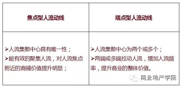 在社區(qū)商業(yè)的人流動線中,一般存在人流的集散中心,目前主要表現(xiàn)為兩種形式:人流焦點(diǎn)和人流端點(diǎn)。