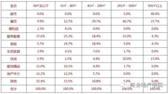 鋪位面積比—與業(yè)態(tài)之間關(guān)系