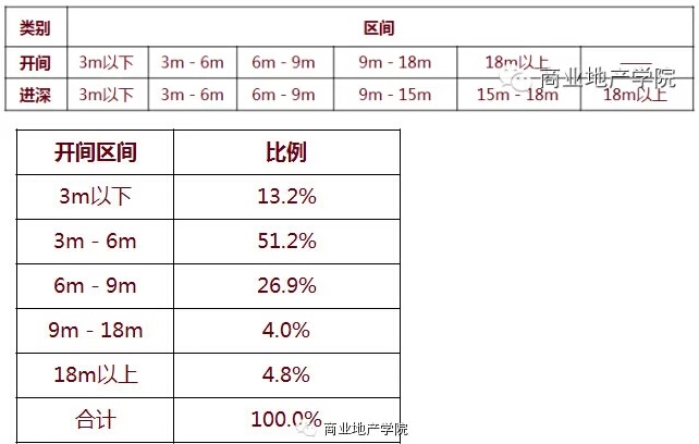 社區(qū)商業(yè)的開間/進(jìn)深主要在以下幾個區(qū)間: