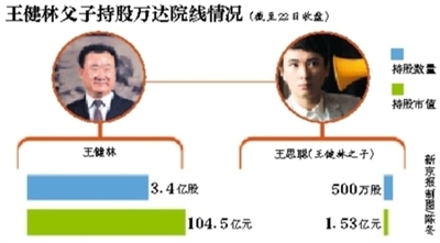 此前,王健林通過萬達投資持有萬達院線68%的股份,共計3.4億股,發(fā)行完成后持股比例為60.71%。王健林之子王思聰則直接持有萬達院線500萬股。此外,王健林的四名兄弟分別持有300萬股。