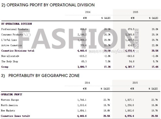 L’Oréal SA 歐萊雅集團2015財年全年營業(yè)利潤表