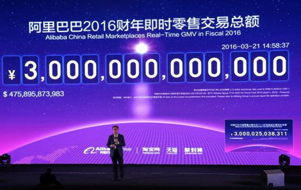 聯(lián)商網(wǎng)消息:3月21日(今日),阿里巴巴集團(tuán)宣布,2016財(cái)年電商交易額(GMV)突破3萬(wàn)億元人民幣。這意味著,阿里巴巴在財(cái)年內(nèi)(2015年4月1日~2016年3月31日)有望超越沃爾瑪,成為全世界最大零售平臺(tái)。同時(shí)阿里巴巴還宣布已經(jīng)初步完成了“網(wǎng)上經(jīng)濟(jì)體”的生態(tài)建設(shè)。阿里巴巴集團(tuán)董事局主席馬云表示:“從2003年淘寶網(wǎng)誕生至今,我們用了13年時(shí)間將成為全世界最大的零售平臺(tái)。這是新的技術(shù)、新的理念,完全調(diào)動(dòng)了整個(gè)社會(huì)的資源,讓社會(huì)共同參與、共同富裕。”