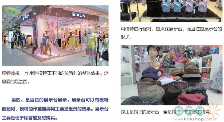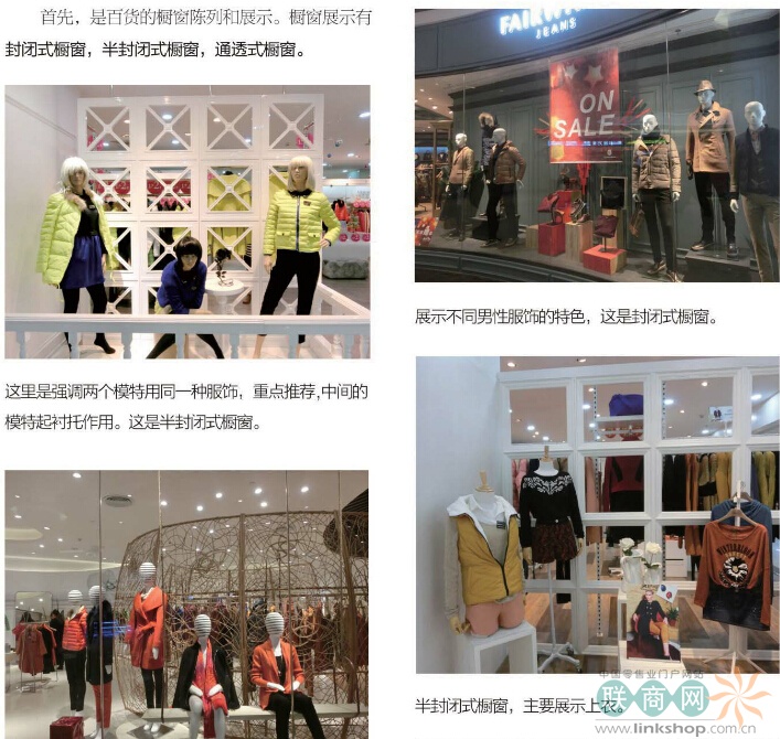 聯(lián)商網(wǎng)特約專(zhuān)欄:百貨展示陳列的四大利器是:櫥窗,靜態(tài)展,模特,展示臺(tái)。櫥窗中一定有模特,也就是模特可放櫥窗展示,可進(jìn)行靜態(tài)展示,也可放專(zhuān)柜顯著位置。櫥窗主要是對(duì)外的宣傳,而且櫥窗是給顧客看的,做完櫥窗一定要看整體效果,櫥窗一定也是放主推的商品。如十月是婚慶高峰期,這時(shí)要將婚慶系列放在櫥窗展示;如冬季,櫥窗主要放冬天的棉衣、保曖衣之類(lèi)的;如夏季,櫥窗主要放夏季穿的襯衫裙子等衣服。模特也要展示季節(jié)性的服裝特色。靜態(tài)展示也是用模特,但展示的位置不一樣,在商場(chǎng)主要位置展示,模特主要給顧客展示的,一般在專(zhuān)柜內(nèi)。有展示上衣的模特,有展示褲子的模特,有展示不同身材的模特,有展示身體不同部位的模特(如內(nèi)衣內(nèi)褲模特)。同時(shí),模特也要展示不同身材和顏色的服裝。櫥窗和模特主要是讓顧客觀(guān)賞和看整體效果。展示臺(tái)主要是吸引和方便顧客購(gòu)買(mǎi)。那如何利用好這四大利器為百貨陳列服務(wù),又如何把百貨的陳列通過(guò)這四種利器發(fā)揮到極致,為百貨的銷(xiāo)售創(chuàng)造最大值。