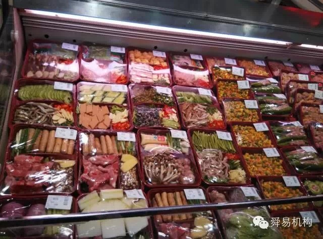 在蔬菜區(qū),所有的莖菜全部是用環(huán)保膠帶包起來(lái)的,葉菜也是用保鮮膜包住的,表面上這增加了物料成本及員工的工作量,但實(shí)際上這些措施都大大降低了生鮮的損耗率,即使會(huì)有一些耗損,香江的員工食堂也能消化一部分。其他的菜品也被陳列的非常整齊。