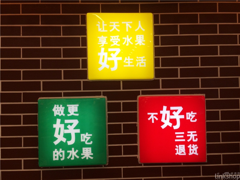 門(mén)店整體的裝飾風(fēng)格都透露著一股田園氣息,店內(nèi)也給人十分清爽的感覺(jué),呈現(xiàn)在消費(fèi)者面前的累累碩果,更是給人以豐收的喜悅,同時(shí)這種濃厚的“田園氣息”也讓消費(fèi)者覺(jué)得“這水果絕對(duì)新鮮”。