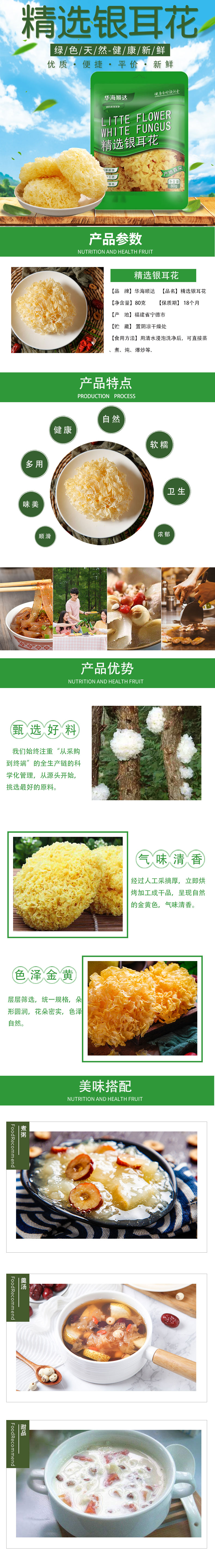 古田縣委銀耳的主要產(chǎn)區(qū),且古田有“中國食用菌之都”的美稱,古田銀耳朵大,肉厚,耳片色白,朵形圓整,全干,無霉變、雜質、泥沙,無耳腳或略帶輕微耳腳。我公司采用正宗的古田銀耳,烘干過程不采用硫磺熏制,保證產(chǎn)品自身口感及營養(yǎng)價值,不添加任何添加劑,品質保障,食用安全。