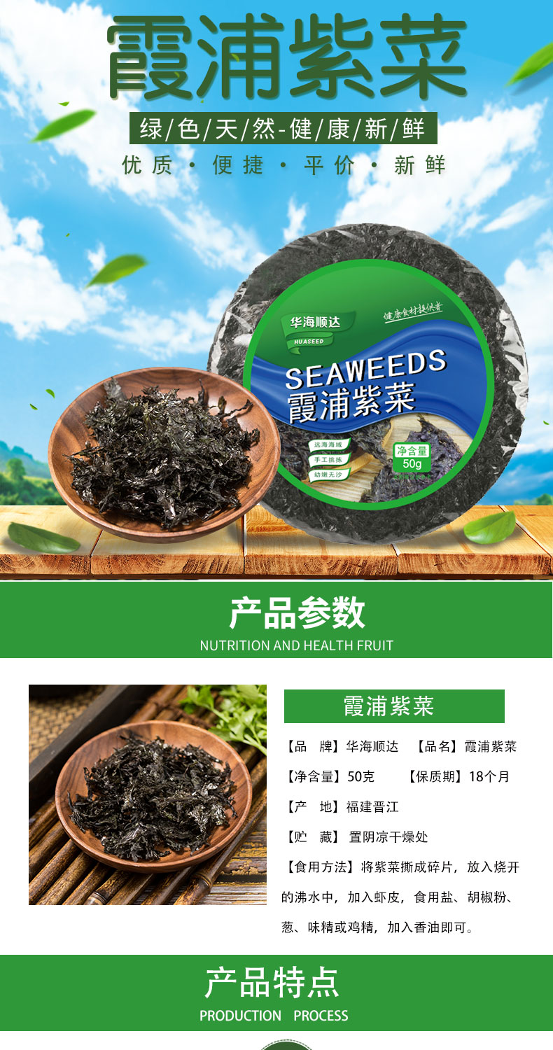 晉江是壇紫菜的主要發(fā)源地,晉江紫菜采用無污染優(yōu)質(zhì)紫菜烘烤而成,具有幼嫩、無沙、脆爽、清香等特點(diǎn),分裝生產(chǎn)時(shí)工人逐片挑選,形態(tài)密實(shí),食用方便