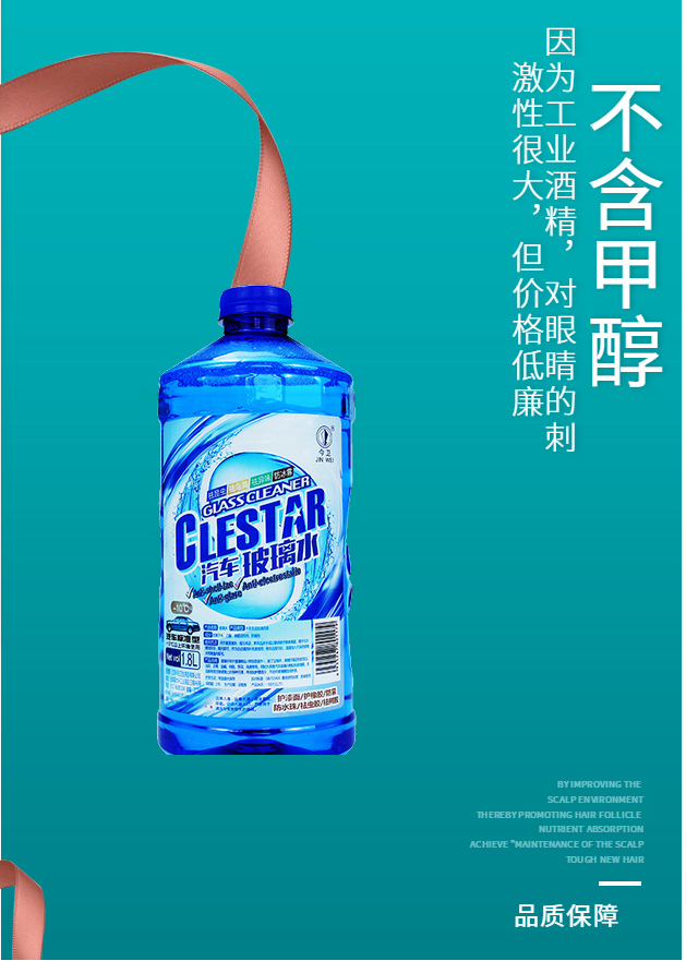 看似一種小產(chǎn)品,好像沒有任何的科技含量,別人用點(diǎn)自來水加點(diǎn)洗潔精即可使用,其實(shí)不然!真正的汽車用玻璃水,是用在高速奔跑的汽車的玻璃上,每噴出一次必須要在瞬間刮清,洗凈。否則影響視線,影響安全。所以選擇汽車用玻璃水關(guān)乎安全,馬虎不得。 本品的要求:不含甲醇(工業(yè)酒精,對(duì)眼睛的刺激性很大,但價(jià)格低廉。);表面活性劑和凈洗劑的清晰度要高,還需迅速清潔;穩(wěn)定性要好,夏天使用不能渾濁、長菌(一團(tuán)一團(tuán)),否則會(huì)導(dǎo)致噴水口堵塞和電機(jī)損壞。 1、本產(chǎn)品為水基普通型,具有優(yōu)良的清潔、防凍功效(-10°C),能快速精除玻璃表面上各種污漬(昆蟲、油泥、瀝青、鹽堿、樹膠、手印、鳥糞等),并可在-10°C的低溫環(huán)境中使用。 2、本產(chǎn)品可在玻璃表面快速鋪展,潤滑玻璃表面,保持玻璃清潔亮澤,提供清晰視野。 3、本產(chǎn)品不含甲醛,氨等有害物質(zhì),在清潔玻璃的同時(shí),不磨損玻璃,不損傷雨刮片和玻璃邊條等橡膠部件,不傷車漆,不傷玻璃膜。