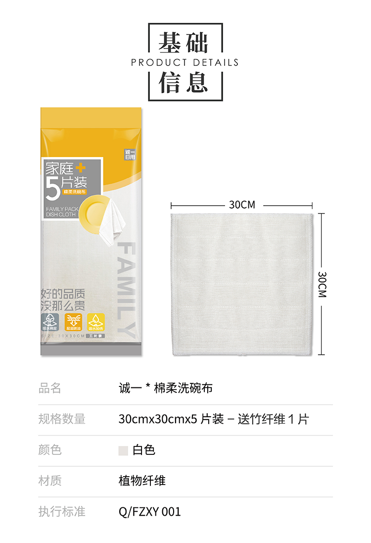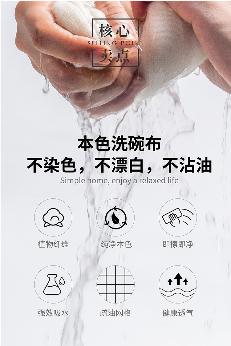 產(chǎn)品賣點(diǎn): ? 不漂白,不染色,不沾油 ? 采用優(yōu)質(zhì)植物纖維,健康透氣,使用安全 ? 七層加厚全棉紗,吸水性好,層層疏油,即沖即凈 ? 采用食用玉米淀粉上漿硬化,安全放心 ? 廚房抹布建議2-3周更換一次,專布專用,更衛(wèi)生安全