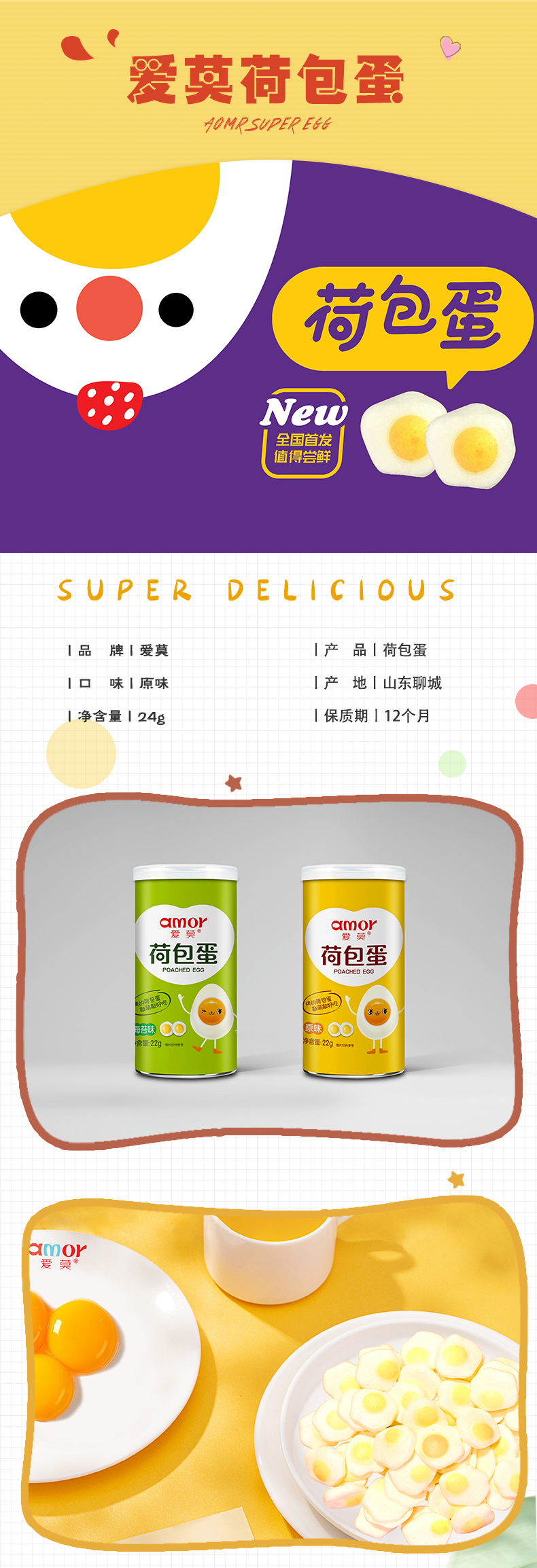 愛莫荷包蛋,給三個(gè)雞蛋都不換!是公司繼溶豆、蛋黃豆之后又研發(fā)的一款微創(chuàng)新零食,繼續(xù)貫徹天然、健康概念 ——無香精 色素以及防腐劑 ,是愛莫推出的首款仿真型零食,生動(dòng)形象的外觀吸引消費(fèi)人群。入口輕脆、口味清甜,蛋奶香充斥口間。主要原料選自生態(tài)直供的鮮雞蛋黃與進(jìn)口新西蘭奶粉,低溫烘焙工藝,非油炸非膨化,保留雞蛋原有營(yíng)養(yǎng)價(jià)值,添加6種活性益生菌,對(duì)腸胃調(diào)節(jié)也能起到輔助作用,是一款「能當(dāng)飯吃」的營(yíng)養(yǎng)健康零食。