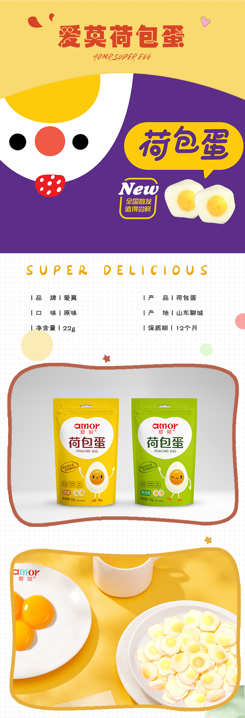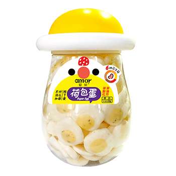 愛(ài)莫荷包蛋,給三個(gè)雞蛋都不換!是公司繼溶豆、蛋黃豆之后又研發(fā)的一款微創(chuàng)新零食,繼續(xù)貫徹天然、健康概念 ——無(wú)香精 色素以及防腐劑 ,是愛(ài)莫推出的首款仿真型零食,生動(dòng)形象的外觀吸引消費(fèi)人群。入口輕脆、口味清甜,蛋奶香充斥口間。主要原料選自生態(tài)直供的鮮雞蛋黃與進(jìn)口新西蘭奶粉,低溫烘焙工藝,非油炸非膨化,保留雞蛋原有營(yíng)養(yǎng)價(jià)值,添加6種活性益生菌,對(duì)腸胃調(diào)節(jié)也能起到輔助作用,是一款「能當(dāng)飯吃」的營(yíng)養(yǎng)健康零食。