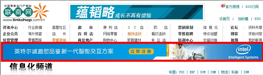 聯(lián)商網(wǎng)是中國(guó)零售業(yè)門(mén)戶(hù)網(wǎng)站,有中國(guó)零售業(yè)新聞資訊平臺(tái)、社區(qū)交流平臺(tái)、商務(wù)對(duì)接平臺(tái)。 聯(lián)商網(wǎng)由浙江易合網(wǎng)絡(luò)信息有限公司于2000年10月創(chuàng)建,公司本著“智慧,開(kāi)放,專(zhuān)業(yè)”的企業(yè)理想,在零售業(yè)界的支持下,通過(guò)投資“聯(lián)商網(wǎng)”這一互聯(lián)網(wǎng)平臺(tái),致力于推動(dòng)中國(guó)零售業(yè)的創(chuàng)新和進(jìn)步! |