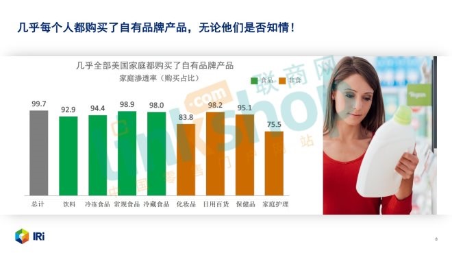 據(jù)美國信息資源公司IRi發(fā)布的《2022年美國商超便利店自有品牌報告》,在截至2022年10月前的52周內(nèi),全美各大商超便利店的自有品牌美元銷售額總體占比上漲至17.5%,整體家庭滲透率超過90%,食品和飲料自有品牌銷售占比18.5%,非食品占比16.2%,越來越多消費者認為自有品牌將影響他們選擇購物的地點...... 高通脹環(huán)境下,零售商該如何抓住機會發(fā)展自有品牌?來看看沃爾瑪、ALDI、LIDL、克羅格、全食超市......全美各大零售巨頭是怎么做的。