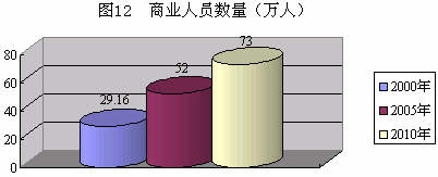 2010年商業(yè)人員達(dá)到73萬人,比2000年年平均增長9.6%。
